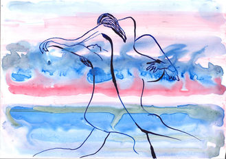 Acrylique, collage, encre, stylo, aquarelle, gouache