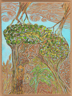 Acrylique, collage, encre, stylo, aquarelle, gouache